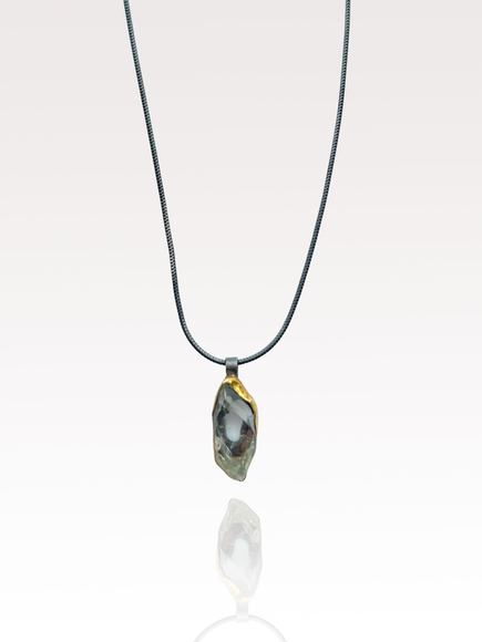Raw aquamarine stone, 18k gold bezel, silver necklace, 2025