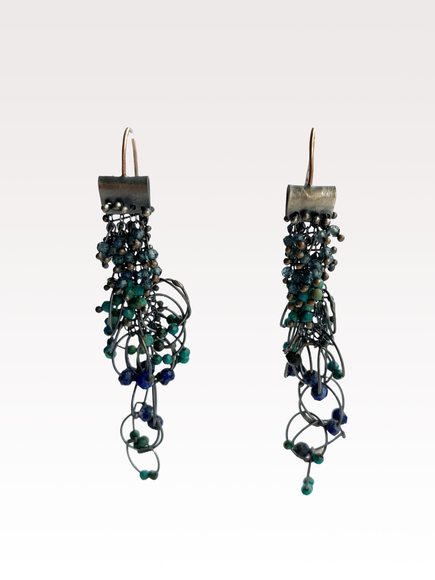 Beaded structure with aquamarine stones earrings, 2025