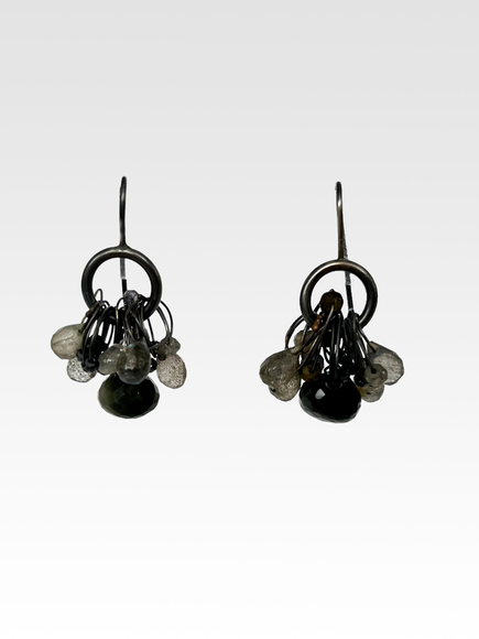 Chandelier earrings with lapis and quartz, 2024