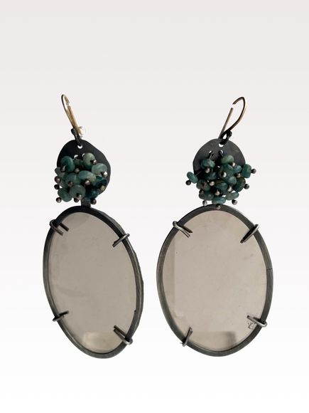 Mica and aquamarine earrings, 2025