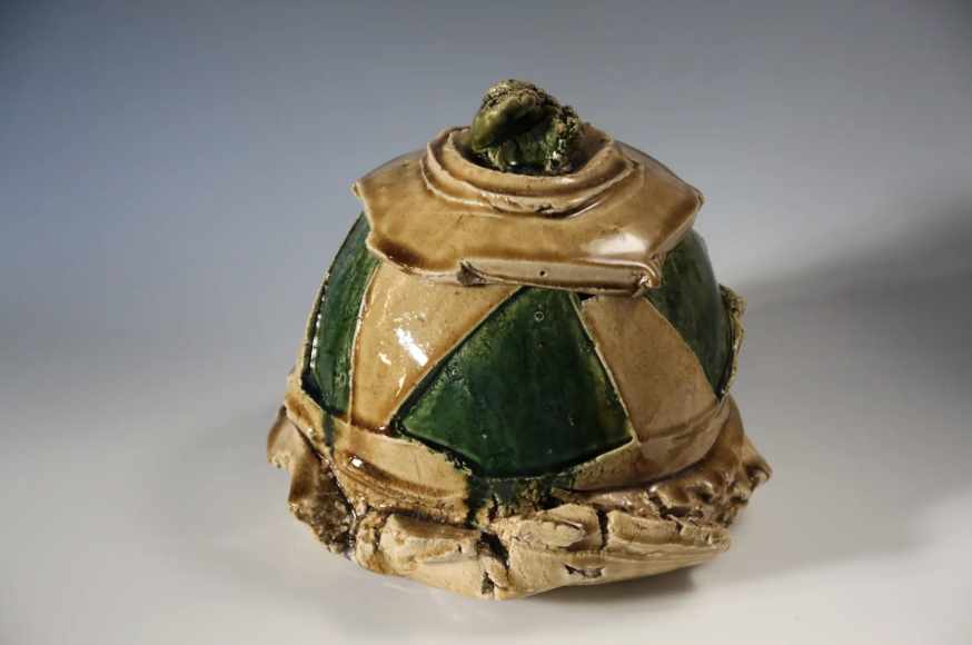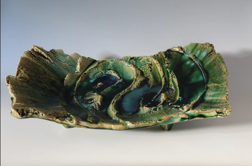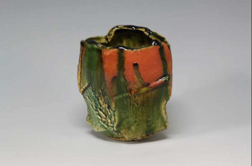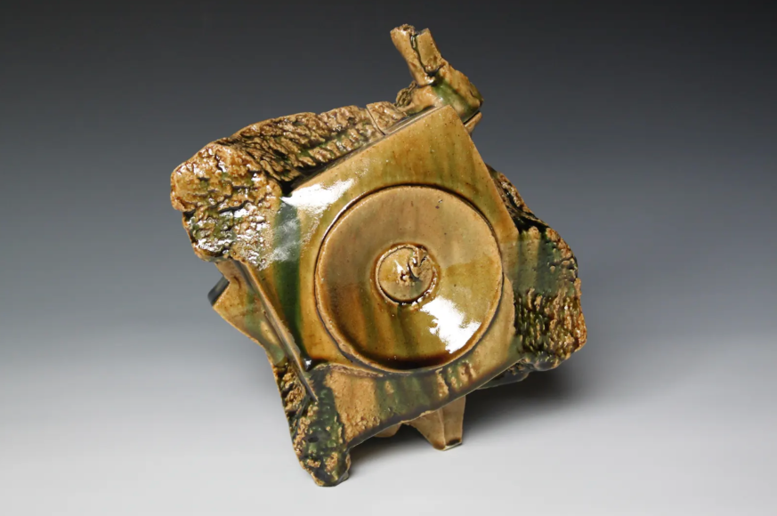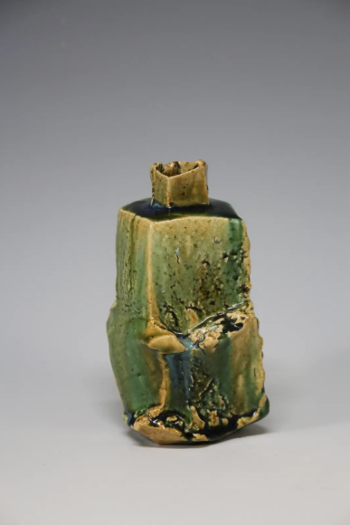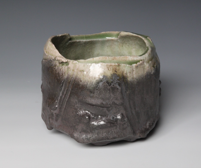 A master of glaze as well as form, Higashida is distinguished by his rich green Oribe glazes, which flow and cascade into white waterfalls and deep emerald lagoons and pools of water. He is also known for his creative use of Shino, an esoteric glaze that goes from a reddish brown to white with bubbles and can trap carbon to create unusual effects on functional and experimental forms.
