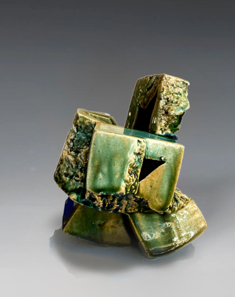 Shigemasa Higashida (1955), takes his inspiration from the slightly imperfect in nature. At first glance we are awed by the lush visuals of glaze only to become aware of the geometric planes and plateaus to which the color is aligned. Again and again, he re-invents nature.