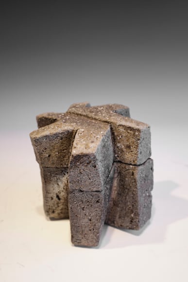This exhibition takes visitors into the experience of an object’s presence and how during the time spent at the studio contemplating the materials and processes, the artist becomes ‘present’ with the work. This significant new body of work uses darker clay body with a darker firing reflecting on how he sees our turbulent time.