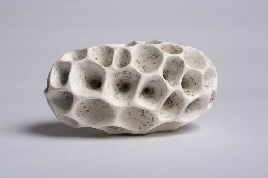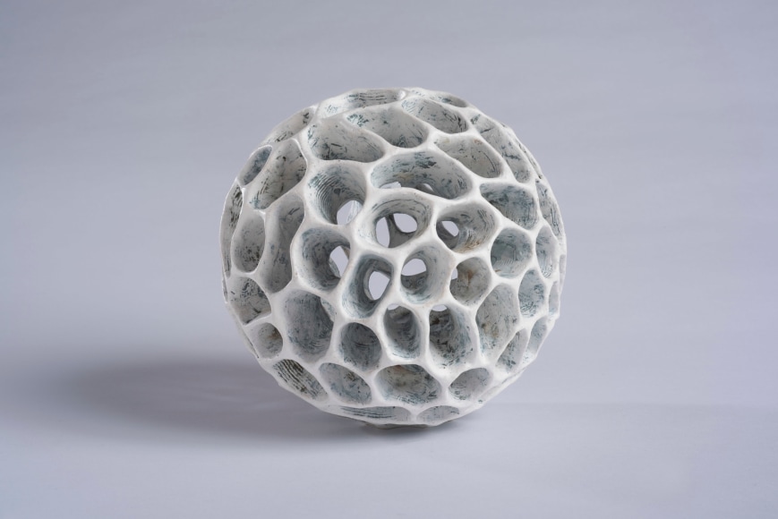 Åberg is known for breathtaking ceramic sculpture with recurring themes of organic forms and shapes. She takes inspiration from the natural world of animals, plants and fossil. There is also visual inspiration to be found in the micro-and macro-cosmos that surrounds us visible only through large telescopes and electronic microscopes. Through her use of paper clay and her own artistic exploration, she has changed the language of contemporary ceramics.