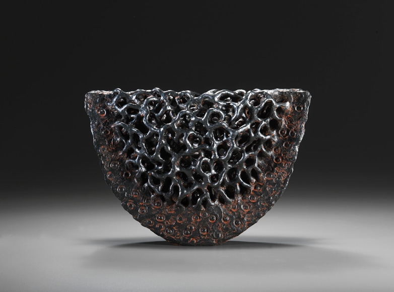 One feels nature in the work as well as science down to the cellular level. One thinks of bone structure, hardness as though the form is fossilized bespeaking its fundamental qualities of an ancient existence. Structures and patterns also inform her work. Åberg is a photographer whose images sometimes are reflected in her clay work.