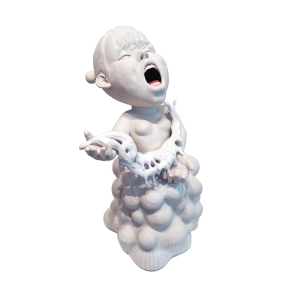 In her sculpture, Kyungmin Park represents a childlike state of mind, free of the limitations of adulthood. Using abstractions of herself and other Korean females in her sculpture she captures the state of mind of the figure represented, as if carrying on a conversation with herself, a parent or playmate. Park merges the darker emotions that dwell inside adults with the child’s imaginary world through her narrative storytelling. One sculpture stemming from a child’s untamed imagination contains a whole narrative.