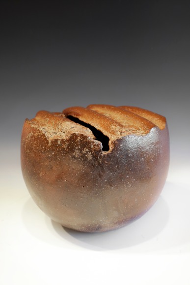 Bizen, a province in Japan, is known for a style of pottery making going back thousands of years in which the elements of clay and fire are foremost, and pots are fired unadorned in a wood-burning kiln. According to Isezaki Jun, the current Living National Treasure of Bizen, “Pottery begins with clay. This is the essential and most basic element of the ceramic production. To this the artist brings wisdom, experience, and technique, and then it is given to the element of fire to complete the process. I believe that as a ceramic artist it is most important to become free. The work must express and take the form of the spirit and soul of the creator.”
