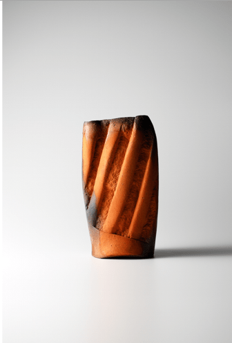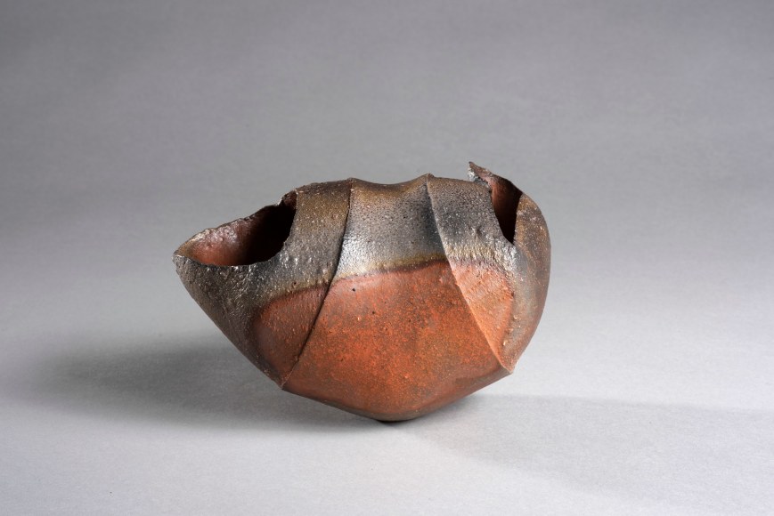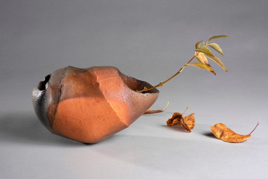 The innovative, sculptural Yo series by Koichiro Isezaki came from his realizations while making tea bowls. Curious about the inside air and outside air, he wondered if there is a form that can feel space (inside) by form (outside). And then he started to bend and squash vessels. The vessels have hollowness. He believes the inner world and the outer world connect to each other and this relationship is a universal truth. Above all, he wants people to feel the living, breathing atmosphere from these pieces which have a sense of movement implied.