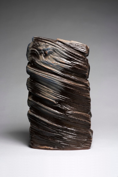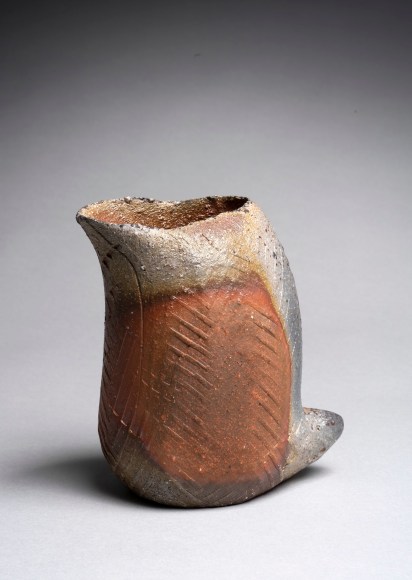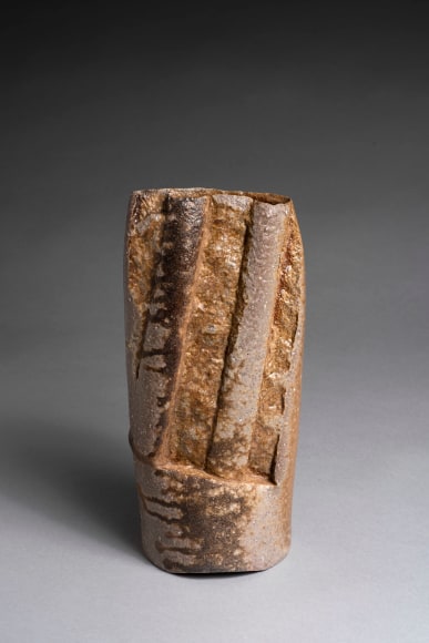 Isezaki Jun (b. 1936) the fifth Living National Treasure of Bizen is considered one of the foremost masters of the Bizen style. While using the traditional Bizen clay and incorporating the Bizen firing techniques, his vessels demonstrate unique, one of a kind details of form. Often, they are slab-built. Fu-setsu (Wind and Snow) and Man-nen (Ten Thousand Years), are both contemporary works of ceramic sculptural art. Iseazki Jun has been featured in several major exhibitions at Lucy Lacoste Gallery and was the master to Kakurezaki Ryuichi, the legendary avant garde ceramic artist. According to Isezaki Jun, the true meaning of tradition is continued renewal “creating something new that represents the present and tradition in equal measure.”