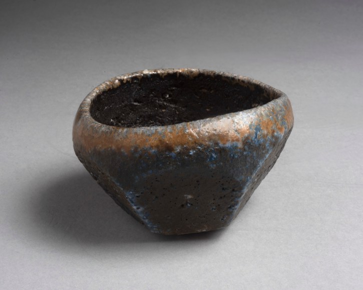 Black and Tan Faceted Tea Bowl
