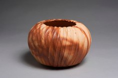 Traditional Bizen ware has a rustic quality and played a role in the development of the tea ceremony.  It is made with a sticky, fine clay, dug from the rice paddies, which does not hold a glaze well.  Much of the work is wheel thrown and relies on surface effects from falling ash, rice straw markings and the artful stacking of the wood burning kiln to block out or enhance certain areas.