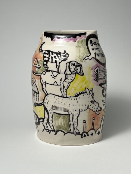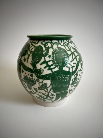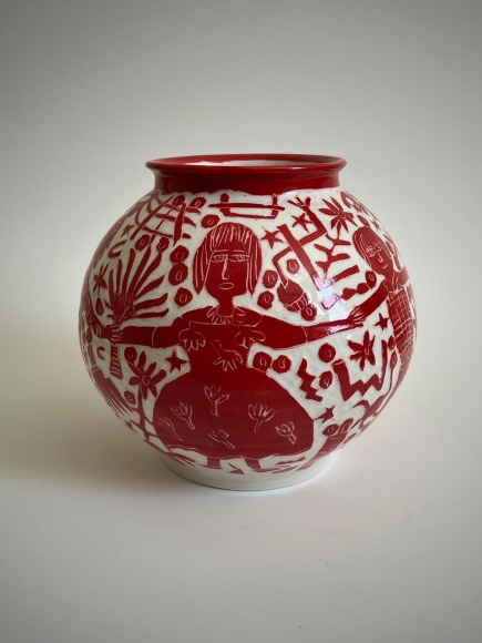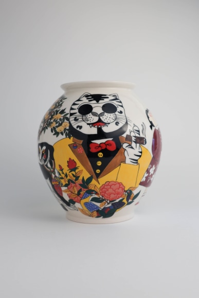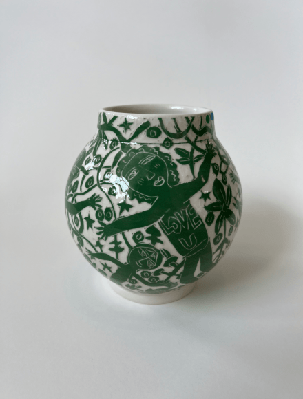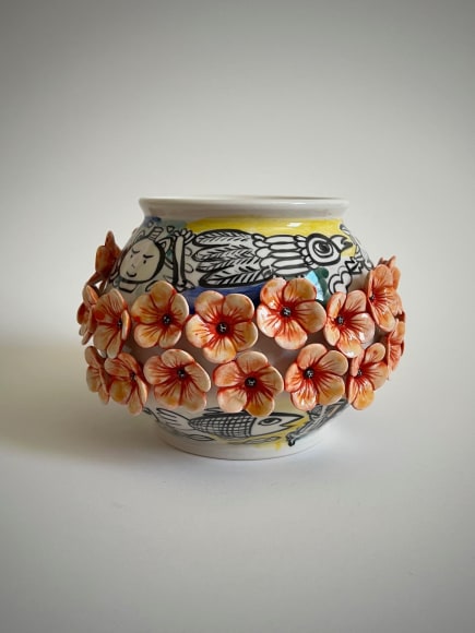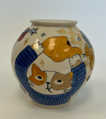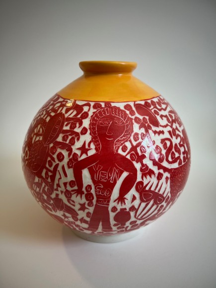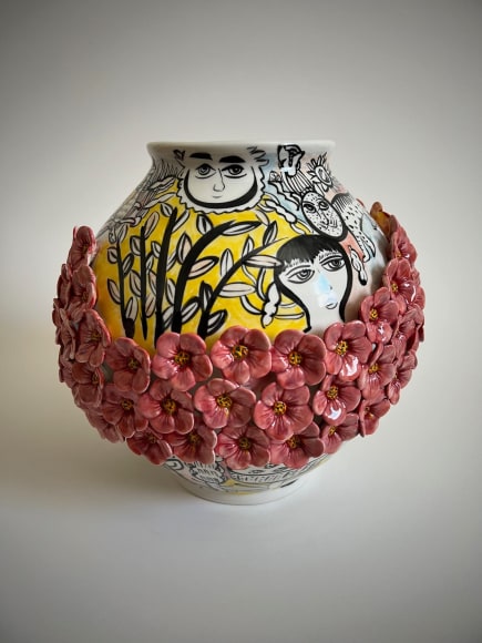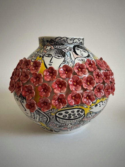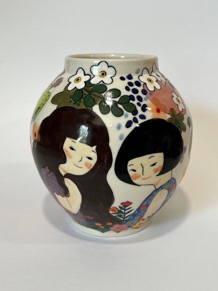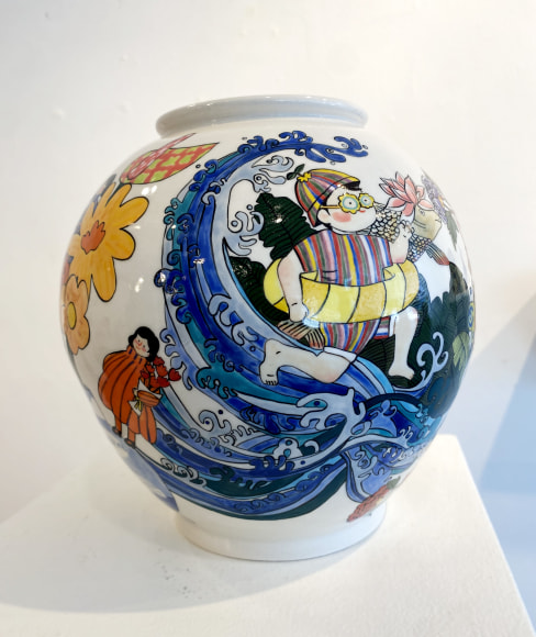 We are so excited to be showing and introducing to you Jihye Han and Yeonsoo Kim, two artists from Korea, partners in art and life. Jihye has an MFA from the University of North Texas and teaches at Phillips Exeter Academy. Yeonsoo received his Masters in Ceramics at the University of Georgia under LLG artist SunKoo Yuh. Their show is joyous and filled with ceramic vessels and sculpture that celebrate this season.
