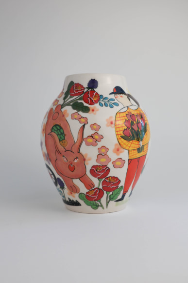 "My work embodies consistency, precision, and meticulous craftsmanship, emphasizing the interplay between intentionality and spontaneity. Delving into the dialogue between tradition and contemporary art, I am driven by a relentless pursuit to expand the boundaries of ceramics as a medium of expression. Each piece I create serves as a canvas for a diverse cast of characters, engaging in silent conversations that speak volumes through their nuanced expressions. These characters, often bearing semblances to self-portraits, invite viewers into a world where implied images and narratives converge. Exploring the intricacies of daily existence, my work serves as a reflection of my ongoing quest for artistic identity. Through the recurring motif of 'Listening,' I delve into the depths of human emotion, transforming abstract inner experiences into tangible visual realities. Ultimately, my art serves as a bridge between the tangible and the intangible, inviting viewers to contemplate the complexities of the human experience and the ever-evolving relationship between self and surroundings." - Yeonsoo Kim