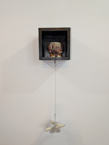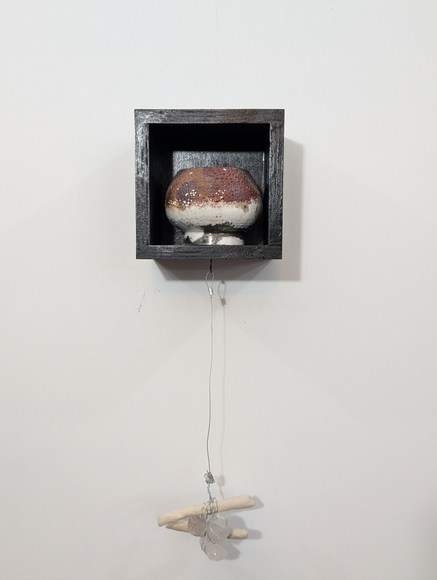 Wheel-thrown Stoneware with Raku Glaze, Raku-fired, Custom-made shadow box, Crystal Quartz, and Ceramic Sticks