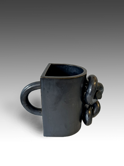 In Lugo’s remix of traditional pottery forms with hip-hop iconography and social critique, or Briggs’s sculptures of knots and chains to speak of social justice, clay becomes a vessel for political commentary and spiritual depth. Michael Dika’s work explores ancestral resonance through form. At the same time, Ossei-Mensah expands his curatorial practice into the material realm, using clay to consider questions of Black identity and cultural hybridity.