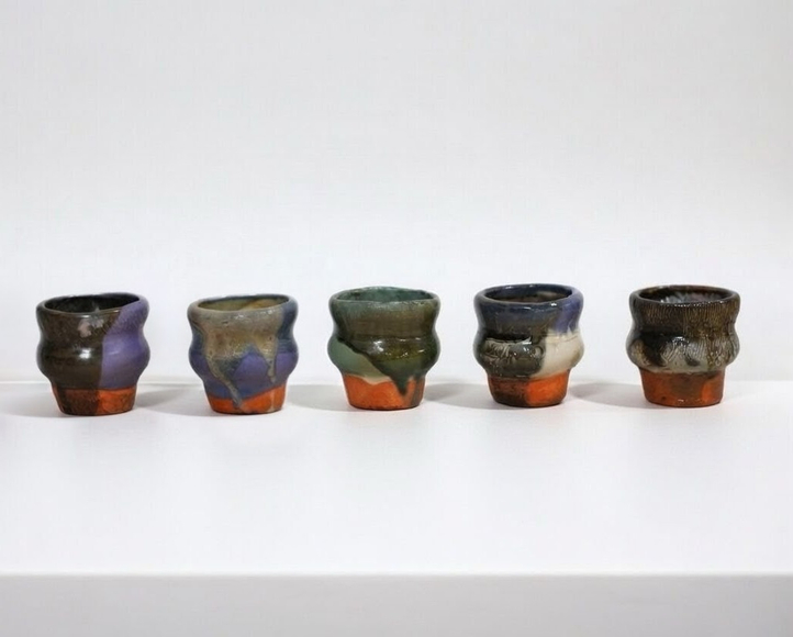 3D Printed Stoneware Cups, Underglaze, Glaze, Handmade Shadow Box