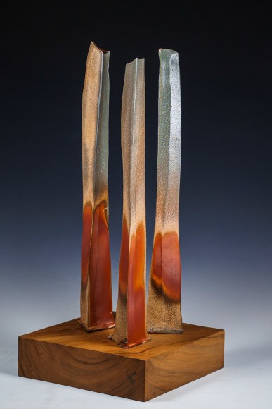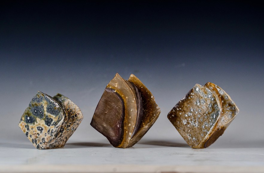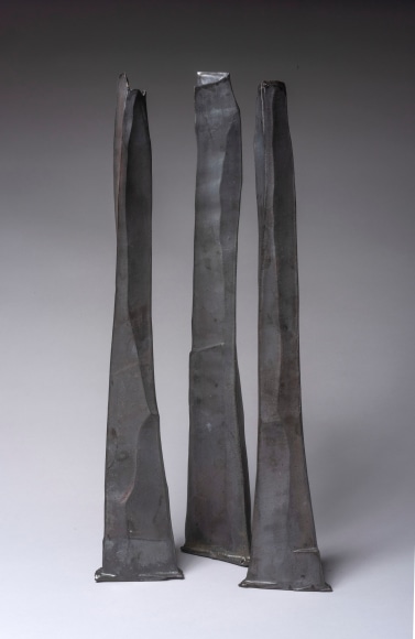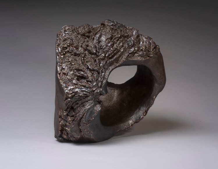 These are excavations—a digging free of thoughts and reflections, fears and prayers and wonder—transmuted by fire into rock-like totems. They are worry-stones befit for a palm, magnified in scale to lend the proper weight to their remembered significance. They are simple forms, curved or torn or pierced, bowl-like studies in heft and balance, ambiguous references to shapes vaguely corporeal. They are a human archaeology.
