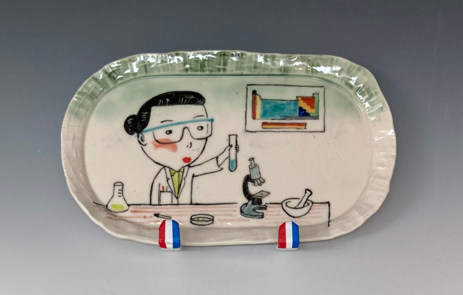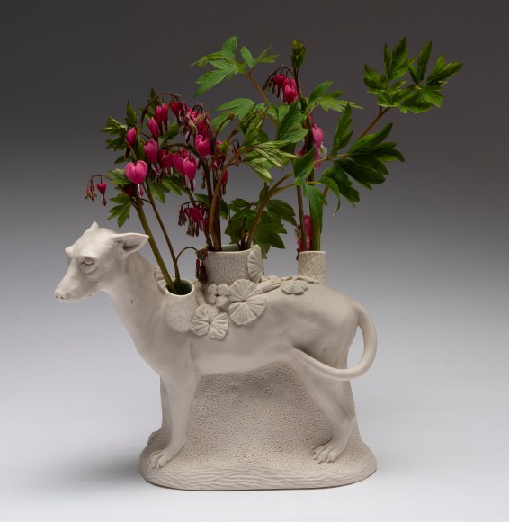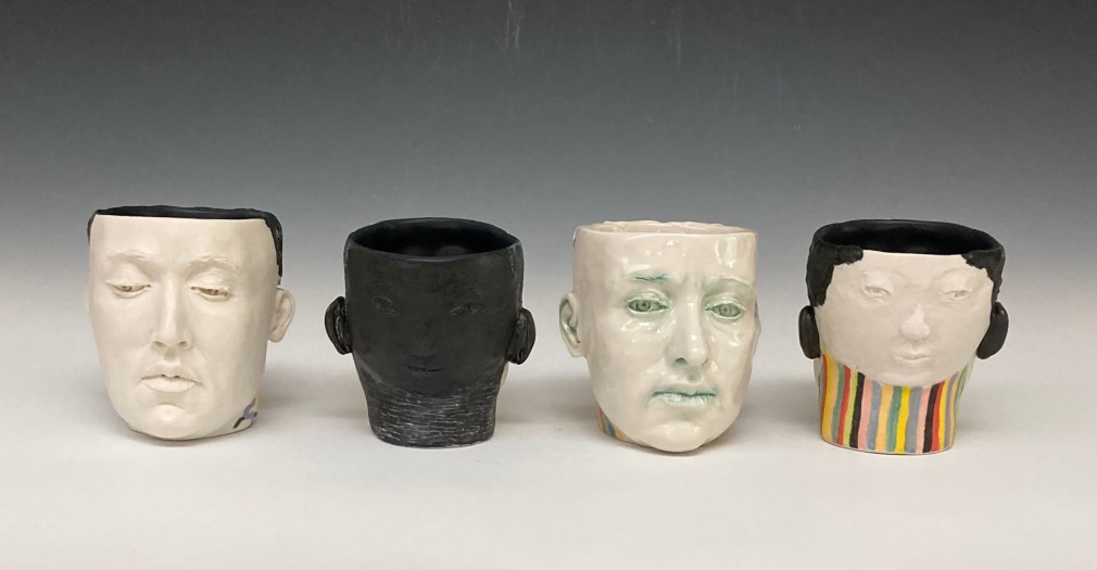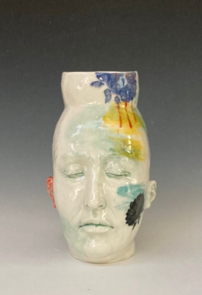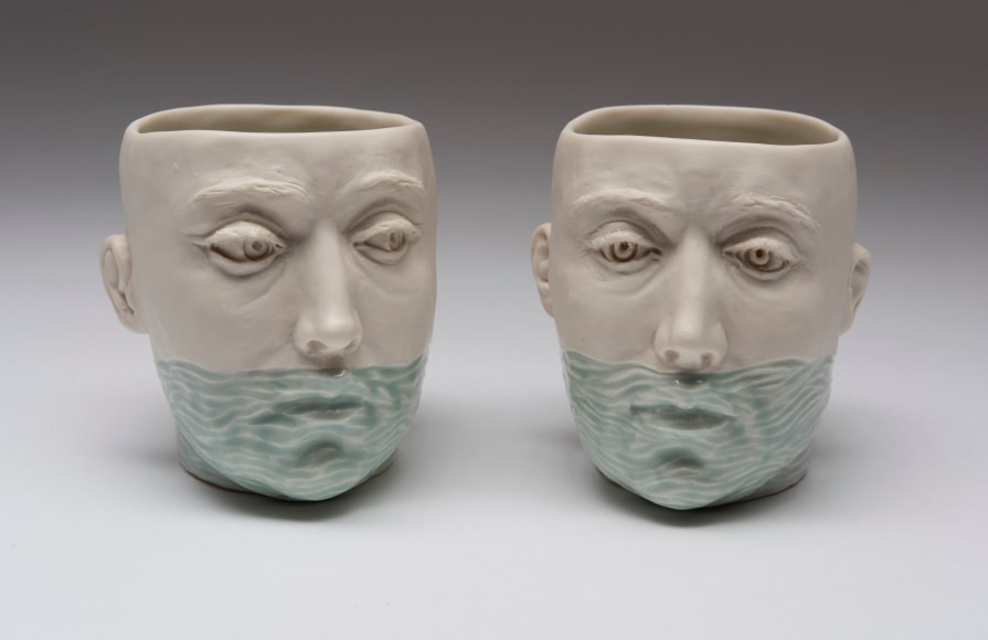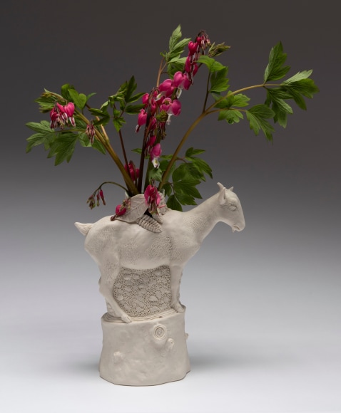 Other works included by Arleo have a very different tone, in contrast to the pieces mentioned above. “It feels important, even critical, to remember to keep some levity during difficult times.” The goat vases add that; they are comical, and beautiful, and the artist enjoys making them. “They feel like a balm when filled with flowers and they make me happy.”