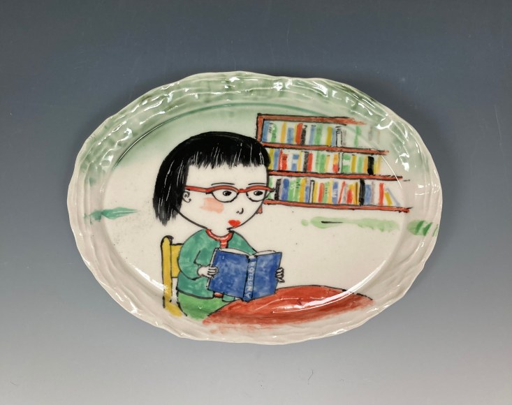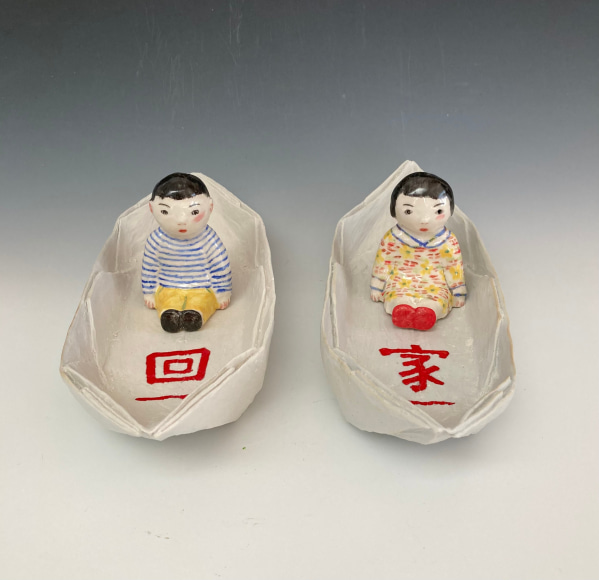 With this exhibition, Beth Lo, a long-time represented artist at Lucy Lacoste, marks her fifth show at the Gallery. Lo contributed “Talk Story” to the title in reference to a Chinese phrase Jiang gùshì, she heard from her immigrant parents regarding oral storytelling, both true and fictional. Growing up, Lo and her sister were enchanted by stories of fairies and gods from Chinese folklore, alongside spontaneous tales of Chinese American girls their age. They also cherished stories about their real-life families and ancestors in China, blending rich cultural heritage with imaginative adventures. See Ancestor Jar, Red and Inheritance Vase, Boy and Girl Resting and Going Home.