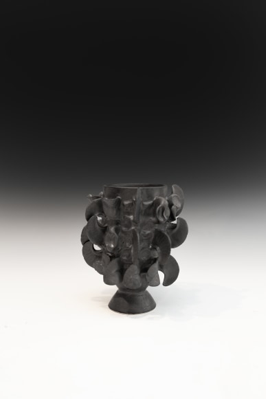 Yet dark beauty is surely about nurturing and aesthetic that embraces a surface that does not readily reveal its shadows, reflections, and contrasts. One must take in the surface as one might the night sky, a deep wooded forest or rich melanin skin. Appreciating dark beauty is practice for life. I have personally been nurturing what I call a black clay aesthetic. This work reminds me of one of my favorite sobering reflections, “beauty is in the ideology of the beholder.”