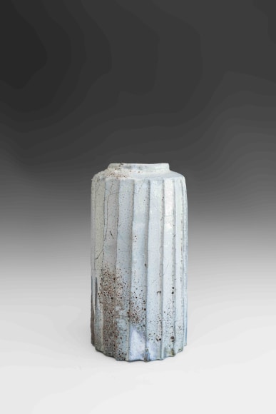 Hans Vangsø was born 1950, and lives and works in Knebel, near Aarhus, Denmark. Hans Vangsø works within a Scandinavian tradition of bold simplicity. He studied at Jutland Academy of Fine Arts in Denmark and was taught by the noted Gutte Eriksen, one of the great originators of Danish studio ceramics, and his mentor. Through her, Vangsø also became inspired by the Japanese ceramic tradition, the root and soul of ceramics. The combination of great simplicity in form and rich texture in glazes, and above all, the total melting of glaze and body render his work unique. The very much alive surfaces of the glaze are obtained in the firing methods developed over years and years, as each piece is fired several times in a gas kiln with salt, seaweed, and metals.