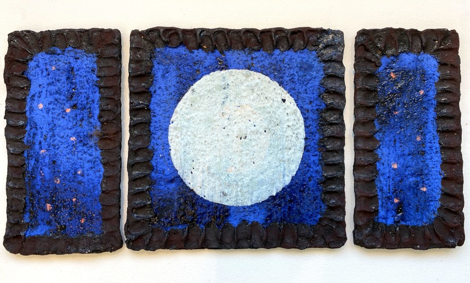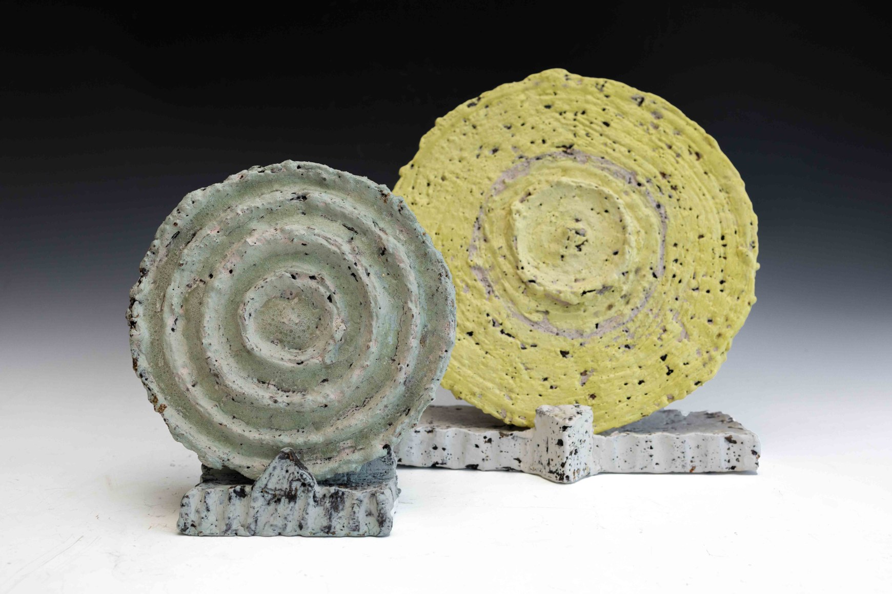 She employs clays, glazes and colours freely and spontaneously, the clay being a free drawing board for ideas, forms, colours, textures and motifs.