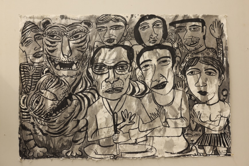 This exhibition confirms how Yuh is steeped in art history and social commentary. German expressionist artists, such as Max Beckmann, are a source of inspiration