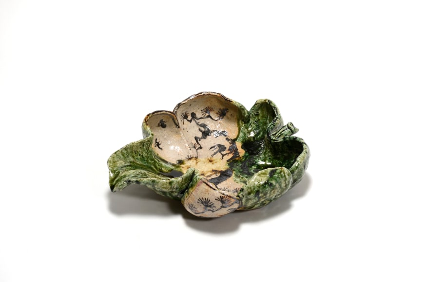 The leaf-shaped pots were shaped by hand-building, then further shaped after throwing on a wheel – both methods have their good points.