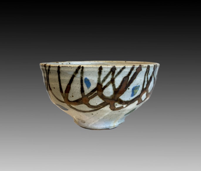 Tenmoku Faceted Bowl with OhataKaki Glaze, stamped, 2017