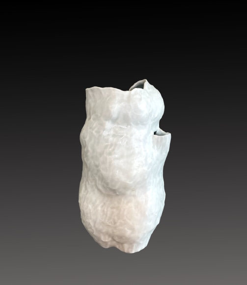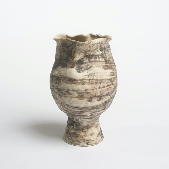 Since the walls of my vessels are so thin, the kiln slumps and folds them in particularly vulnerable areas. My process thus hinges on the interplay between what can be controlled and what cannot. The pots hold the memory of the shape they knew during the making process, but they are also formed by the unpredictability of the kiln. The outcome is a porcelain vessel that stretches the limits of the material.