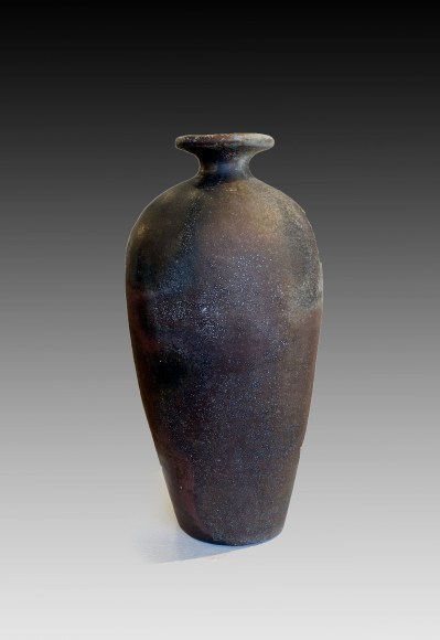 Tall Vase Form, wood-fired with Flashing Slip and Natural Ash