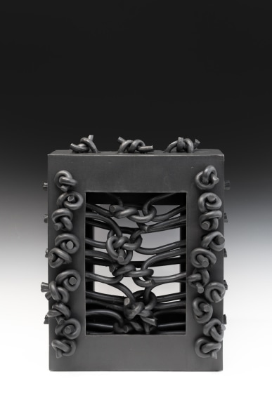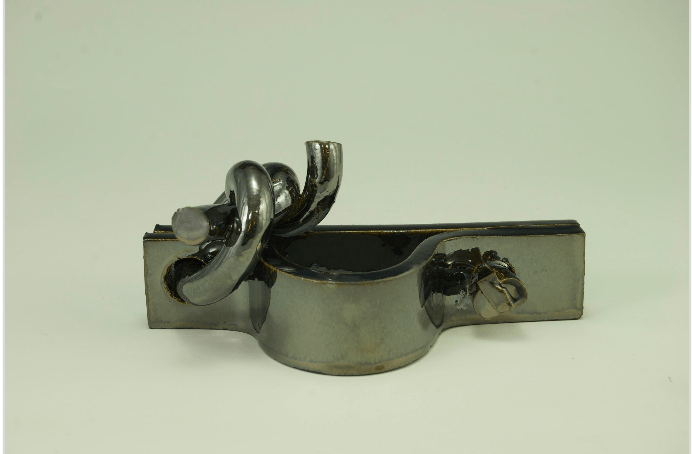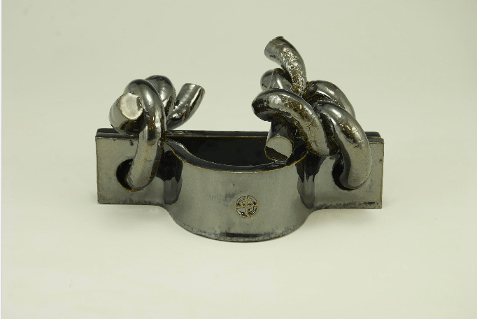 Glazed Stoneware with Steel Chain and Archival Pigment Inkjet Print mounted on Dibond
