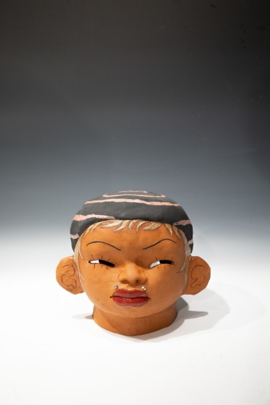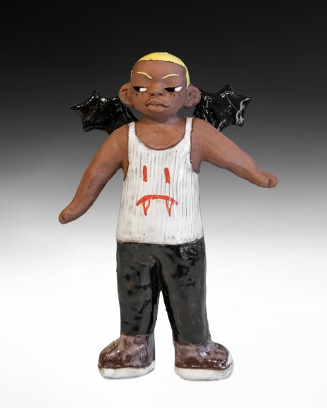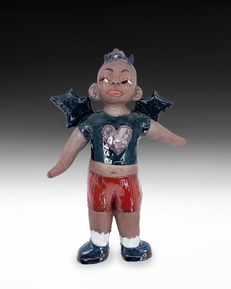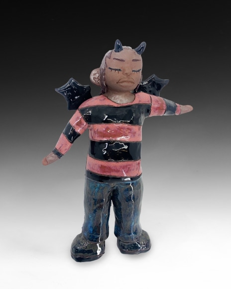 Low fire ceramic, glaze, oxide wash, rhinestone