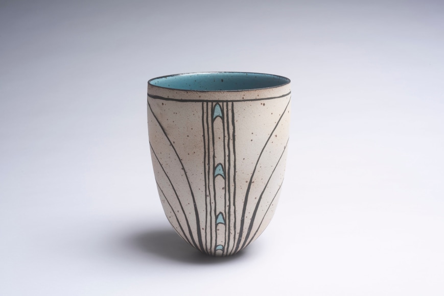The two leading Danish ceramicists of the 20th century were Gertrude Vasegaard and Gutte Eriksen. Vasegaard’s abstraction of the cylinder and minimal decoration became a touchstone for a whole stream of Danish ceramics. Gutte Eriiksen’s approach was free, organic, and often inspired by Japan. She taught so many women throughout her career, they became known as “Gutte’s Girls.” These two renowned artists have been followed by legendary female artists such as Bodil Manz, the most internationally recognized ceramic artist from Denmark, known for paper thin cylinders with handmade decal decoration; Alev Ebuzziya Siesbye, celebrated for vessels of pure color with an unglazed line; and Nina Hole, the creator of burning fire sculptures, founder of the Clay Today collective, the CLAY Museum of Ceramic Art and the International Ceramics Research Center at Guldagergaard.