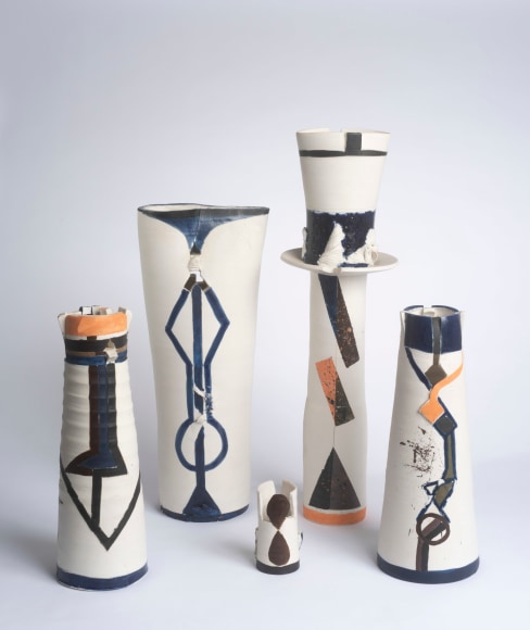 Hadzi did not return to clay until fifty years later, when a chance visit to the Truro Center for the Arts at Castle Hill brought him into contact with potter Chris Parris, then teaching at the center. Intrigued by the possibility of exploring the medium once again, he hired Parris to become his studio assistant, and the two set about installing a kiln in his Cambridge studio.