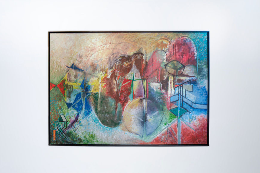 Hadzi began this painting in 1996. It's done in oil paint, and like his other work, has an abstract theme that invokes an unknown subconscious full of color. At same time, this piece has shapes and hues that feel familiar. Upon its completion in 1998, Hadzi said, “I feel safe that it’s a good painting. I feel satisfied with the end result.”