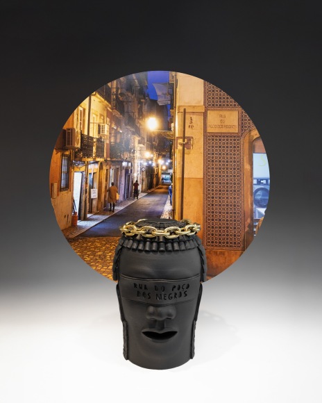 He thinks of Mouros as immortal beings who have inhabited spaces in history and are now telling us their stories. For this exhibition, Scott made a series of heads that represent these beings, focusing on different aspects that were of interest from his research including the African diaspora and Hip-Hop Culture. These are paired with photographic rondels taken by the artist in contemporary Lisbon. Through the combination of the Heads and Rondels, the story of slavery in Lisbon is told, conveying the horror, irony and twists of this tragic chapter in history that continues to impact our world culture today.