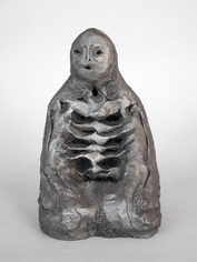 In a new direction for the artist, Takamori presents several graphite black seated skeleton figures. Made through a process of squeezing and gouging, the distinguishing lines are not of painted glaze but of shadow and carved lines. These works explore the feeling of a presence within an absence – life force in its most elemental form.