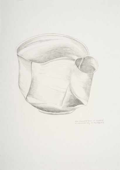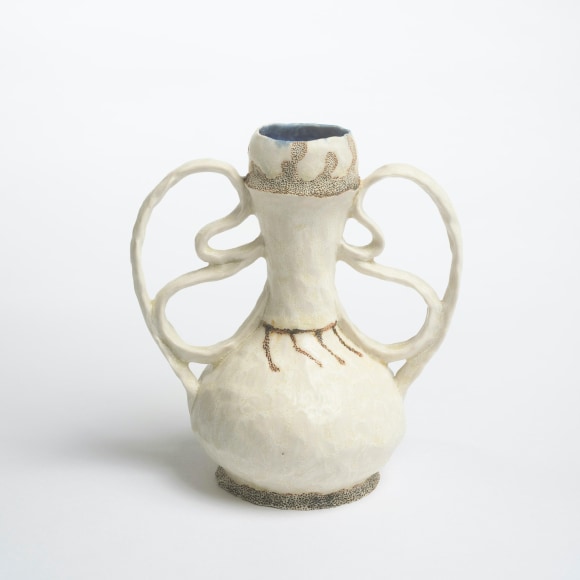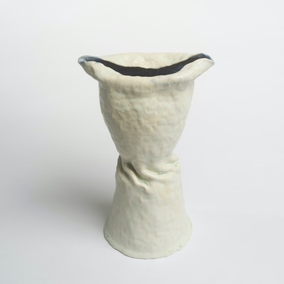 I went South thinking that seeing Ohr’s work in the stacks at the New Orleans Museum of Art and at the Ohr-O’keefe museum in Biloxi would bring revelations and new approaches to my work. As I moved through the stacks and made work in the South I began by closely referencing particular Ohr pieces, recreating ghost objects. These objects were essential in this project and helped me realize that I then needed to depart and claim my relationship to Ohr apart from him and the distinct objects and persona that he created. This realization brought me back to myself. Ohr and his artwork were entirely Ohr and to relate to him most was to assert my own narrative within my vessels through repeated motifs and gestures. These gestures feel like they are in conversation with Ohr’s signature twists and folds, but had begun before this project, and continue to change.