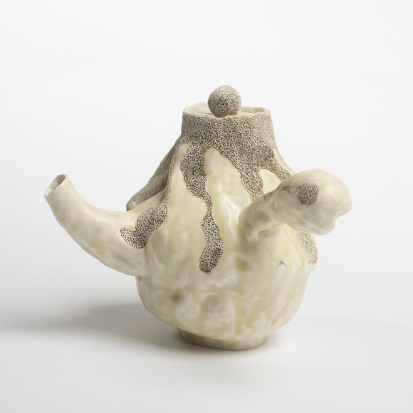 I was attracted to how Ohr inverted the metaphor of the vessel- what one would expect to live in the inside of the hollow object manifests itself on the exterior of the pot. In turn, as much as a pot references the human body, then Ohr put the insides of our bodies on the outside of his pots. He made the underlying connection between the vessel and the body overt- putting excrement in teacups, and making vulva piggy banks. He was not shy, which posthumously gave other clay artists permission to play.