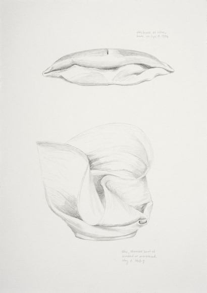 Lily Fein’s sensuality is intuitive, organic, implied—naturally reflecting the outer female sex organs. This is evident in her Vulva series. The edge is important. The clay reflects the way she touched and pinched the clay—as if it were skin.