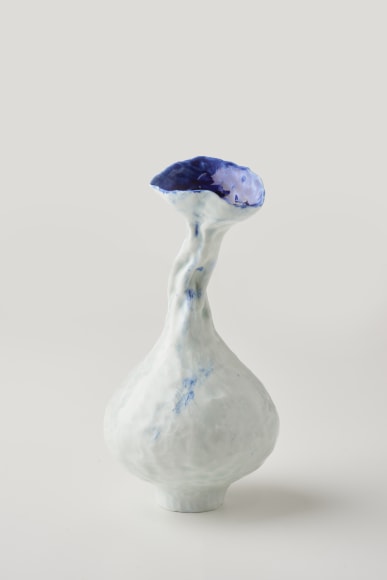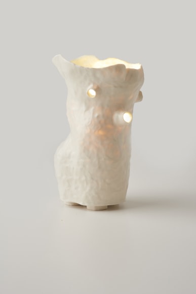 More than 30 unique vessels compose this exhibition which includes two illuminated vessels. The pieces are compact, usually not exceeding 9 inches in height, and yet seem to each contain a world of their own; their intimate scale adds to their consequence. All coiled and pinched porcelain, fired in a high temperature reduction kiln that produces elements of subtlety and variation in the glazes that cover the skin of the pot.