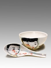 Lo’s sculpture celebrates family and evokes childhood experience of wonder and surprise. It hints at something beyond the mundane and expresses the dual nature she experienced growing up as a minority female in the United States as in Chinese American Takeout Tower. As the artist states “My art-making process, always related to a sense of art’s social responsibility, eventually led me to the more directly politicalAmerican Heroes series, which specifically critique the current administration policies.”