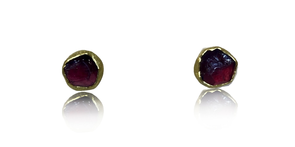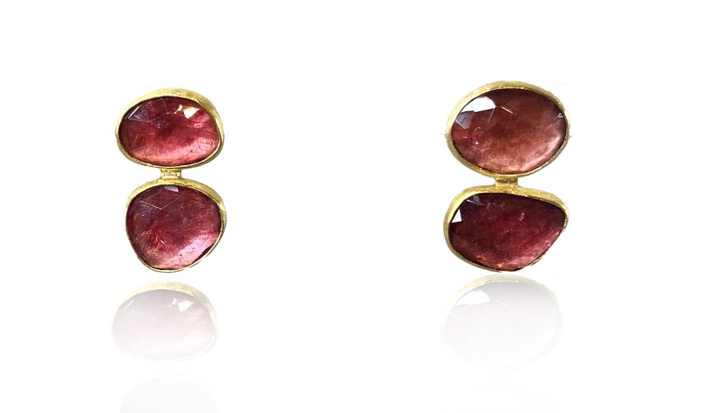 Rosecut red tourmalines, irregular shape stacked on ear, 22k/18k, 2024