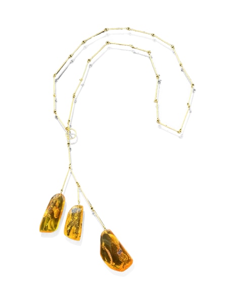 Three Irregular Baltic amber on various length segment Lariat 28", 2024