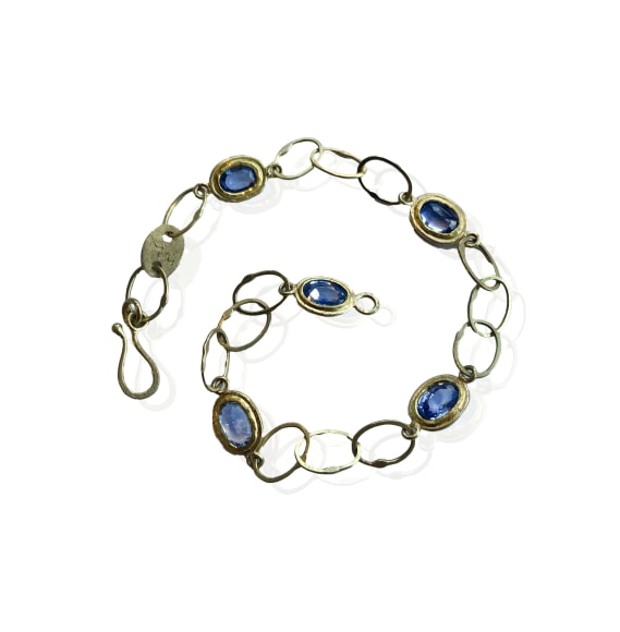 5 Blue Oval Ceylon Sapphires set in 22k Gold set bezels with 18k oval links, 2024