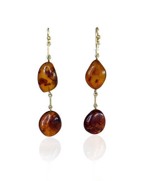 Two Cognac Amber Pebbles with French wires 18k, 2024