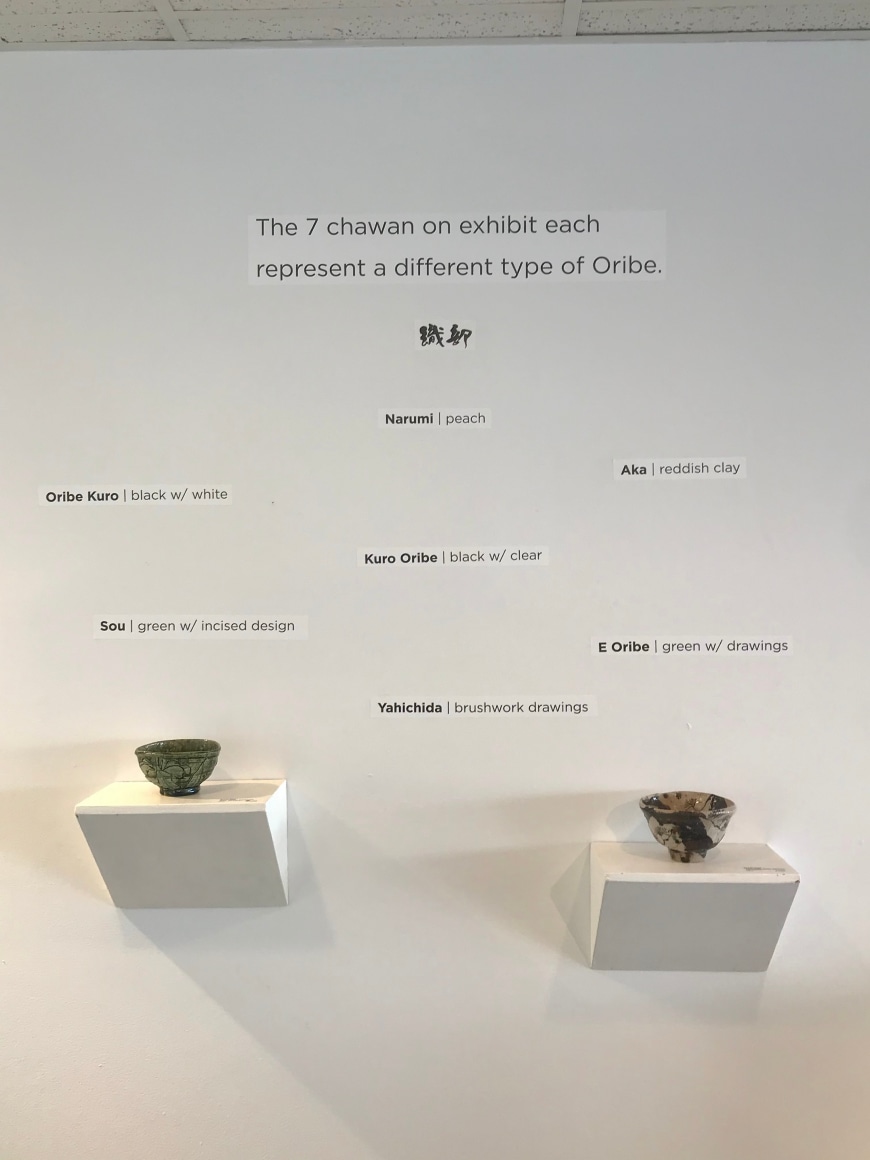 The seven chawan on exhibit each represent a different type of Oribe. I hope they show the differences and qualities of each type. I used to make Oribe chawan on the wheel, but lately I have been hand building them as well. (Sou Oribe and Yahichida are wheel thrown; the rest are hand-built).