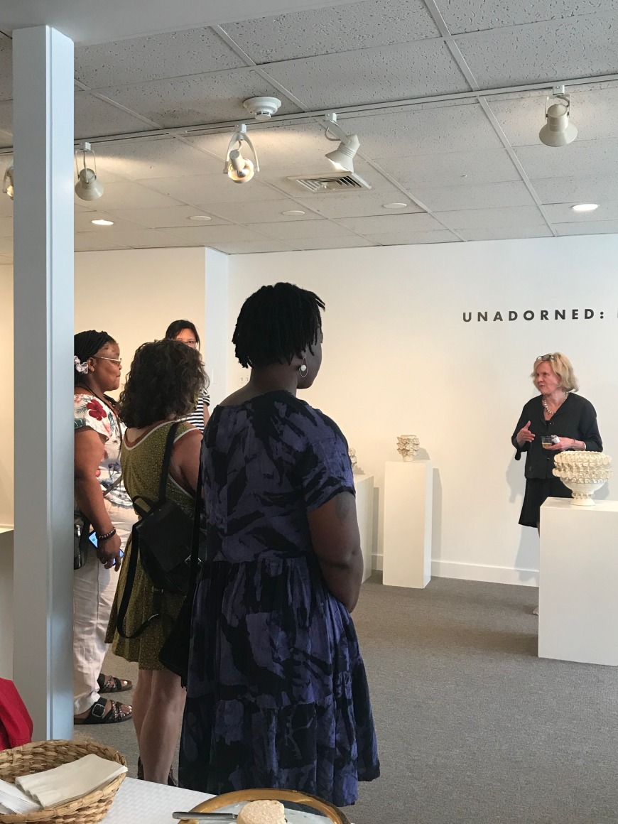 Unadorned is my way of thinking about the quality of unglazed mature clay. I always appreciated my pinched objects in the raw as well as in the round. I glazed them out of tradition. Yet, I was always formulating glazes that accentuated what I was covering. My inspiration is wide and varied and I'll begin with being inspired by the sculptor, Halima Cassell whose works in clay are all unglazed and she has fully explored the beauty in the surface of unglazed clay. I was also heartened by the song "Cleva," by Erykah Badu, wherein she sings, "this is how I look without makeup… Said that I'm alright with me." She pushes back against tradition in order to appreciate her own true self. I have not wanted to glaze my work for some time and it’s funny how the universe can line up on one’s behalf as a clay body, a moment and an opportunity presented itself so I could move in this direction. The stoneware clay with the toasty, coral textured surface is where I began to release the process.