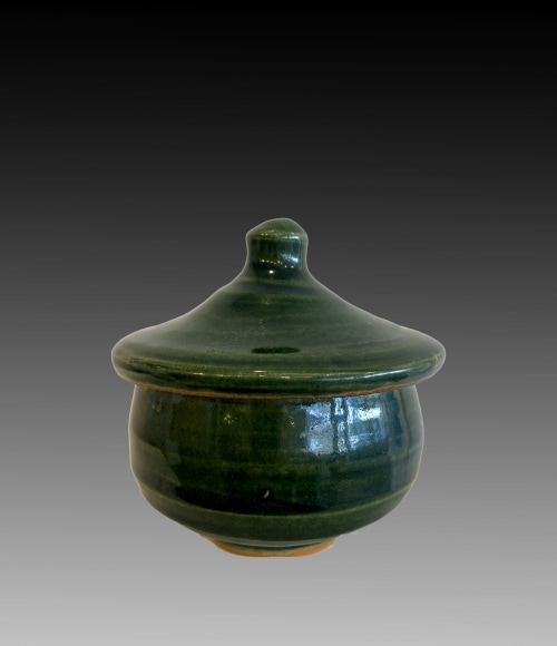 Warren MacKenzie (1923 –2018) entered the School of the Art Institute of Chicago-in 1941 taking classes in drawing, painting, design and art history. From 1943 – 1945 he served in the US Army as a silk screen technician where he designed and printed training charts and maps. While stationed in Yokohama, he had a painting exhibition at the Nichida Gallery in Tokyo. On his return to the Art Institute of Chicago, he found all the painting classes were full, so he took ceramics, where he meets Alix Kolesky and discovers Bernard Leach’s A Potters Book. Warren marries Alex and they become potters.